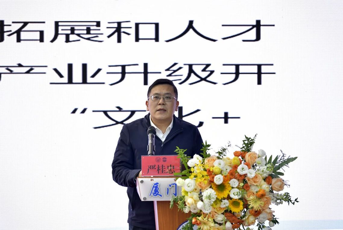 海峡出版发行集团总经理严桂忠作《文化赋能 产教融通 共筑 “一带一路” 低空经济新图景》主旨演讲。