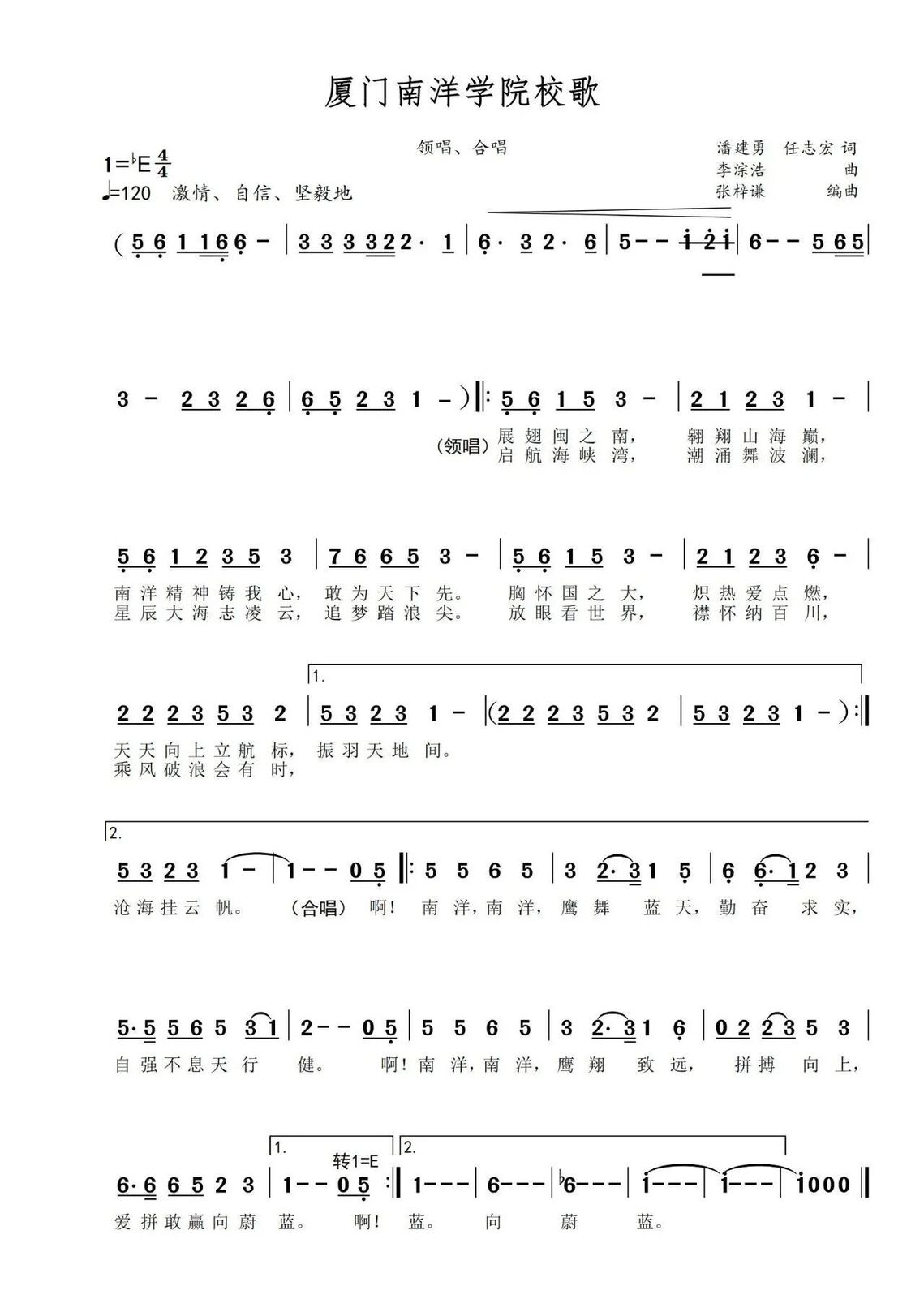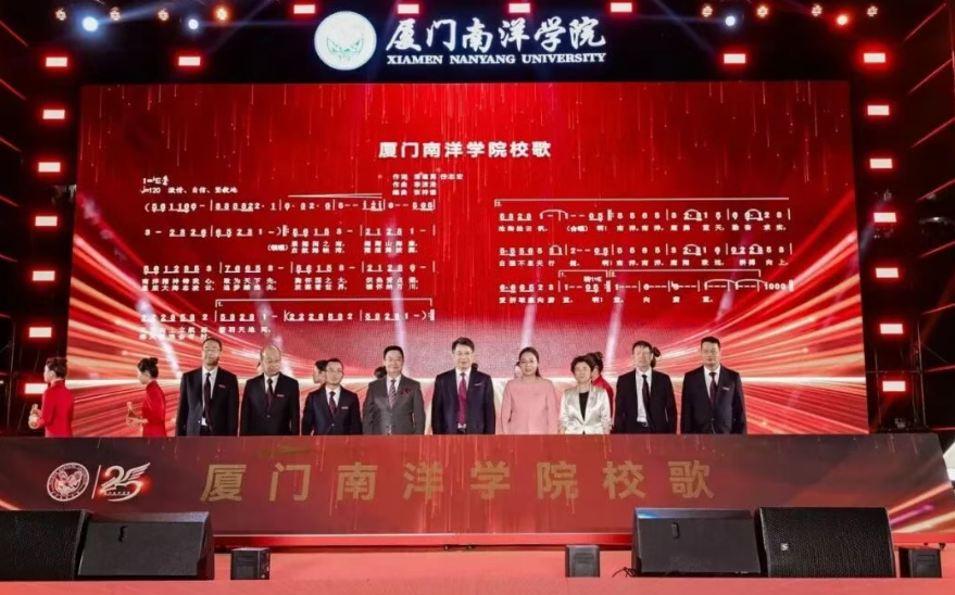 11月1日,25周年庆祝大会现场,《厦门南洋学院校歌》正式发布。校歌是学校精神文化的象征,是凝聚师生校友的重要纽带。学校创办人鲁加升、董事长鲁晓芹、副董事长潘恒曦,校领导陈宏瑶、钟石根、许智坚、李振杰、蓝德森、侯红科共同发布校歌,并与全体师生一起首唱《厦门南洋学院校歌》。旋律铿锵,初心滚烫。25年风雨兼程,《爱拼才会赢》的拼搏基因,早已融入南洋血脉,而今校歌嘹亮,更凝聚起全体南洋人同心向未来的磅礴力量。