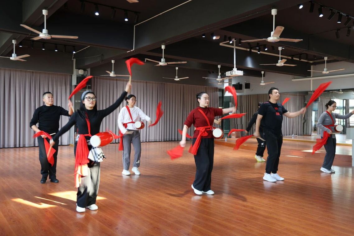 红绸飞舞,鼓点铿锵
