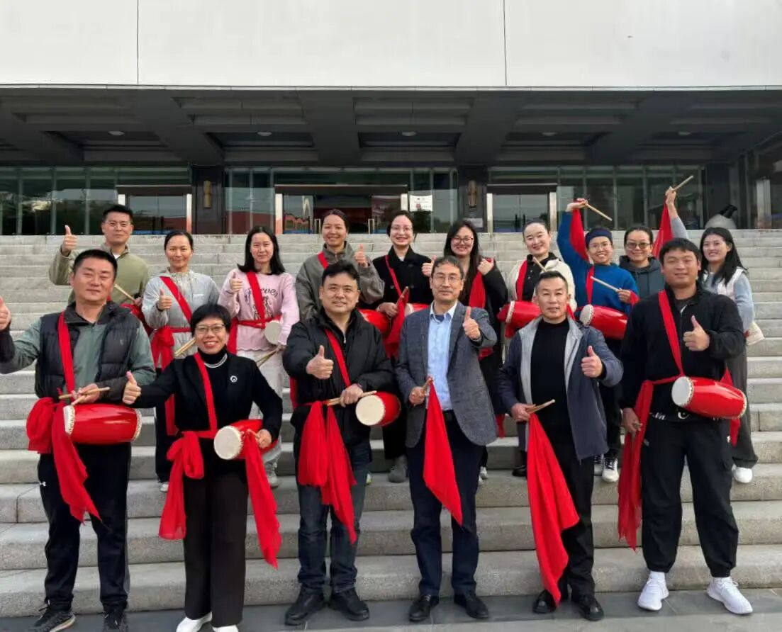 经过一周密集训练,教职工们从生疏到熟练,从个人练习到集体配合,鼓点日渐整齐,舞步愈发流畅。在结业展示中,他们以安塞腰鼓为主要表演形式,呈现了节奏鲜明、气势磅礴的集体展演,赢得了两位传承人的高度认可,展现出良好的教学转化潜力。