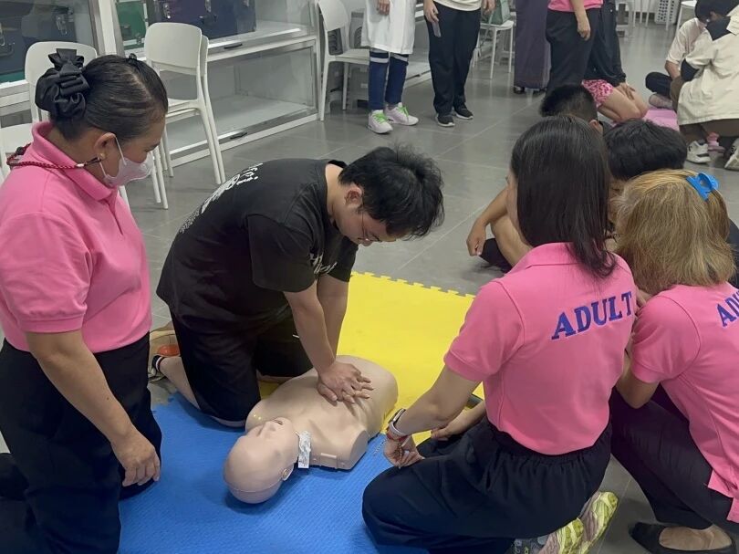 2025年6月16日,学生冯沈昊在泰国西那瓦国际大学体验基础急救护理保健课