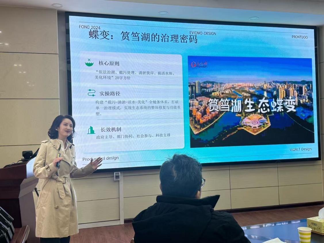 厦门南洋职业学院马克思主义学院副教授刘娟介绍厦门市筼筜湖及校园观音湖治理情况