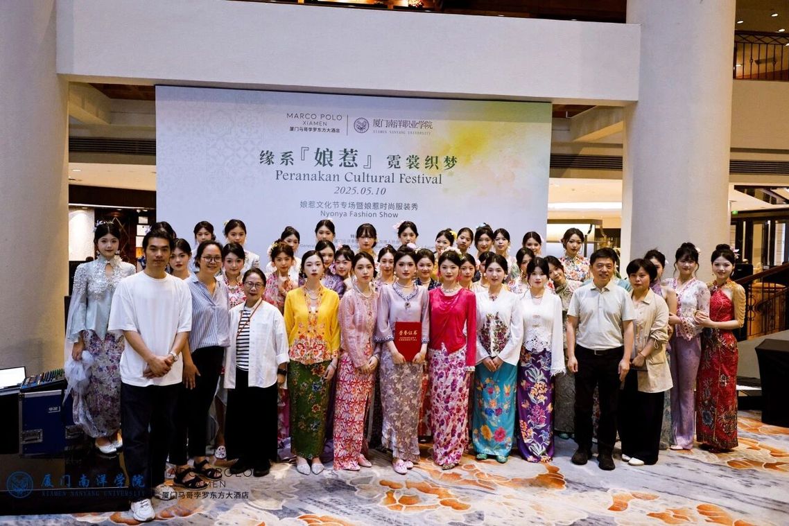 2025年5月10日,这时距接到通知仅仅109天,在厦门马哥孛罗东方大酒店,“缘系‘娘惹’ 霓裳织梦”时尚服装秀即将上演。此次秀场35套娘惹服装均由我校师生在这109天中,从零开始创作而成。自发布参赛通知开始,前后共有190名师生踊跃参赛,提交148个系列、约740套、1400款设计稿件,最后呈现了一场传统与创新交织、中新文化交融的视觉盛宴。