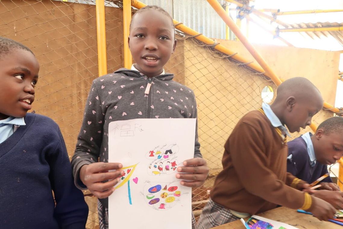 王今说那是在内罗毕第二天发生的事情。课堂上,王今告诉了孩子们她的电话号码,第一天的教学冷遇让她有些受挫,没想到的是这次基贝拉的孩子们争先恐后记下她的手机号码。学校里的黑板磨损严重,王今便在她买来的白纸上写下一串阿拉伯数字。看到孩子们一笔一划认真记下她的电话,王今颇为感触。“那一刻,我觉得被孩子们接纳了。”